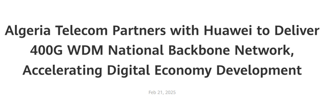 近日,华为成功斩获阿尔及利亚电信的关键大单,双方联合官宣,正式启动全国400G WDM项目!